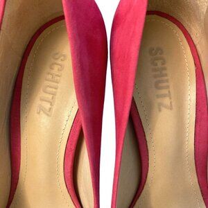 SCHUTZ Farrah Hot Pink Suede Pointed Toe Heels Pumps