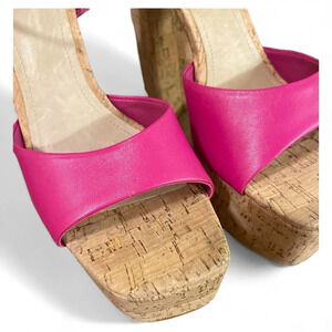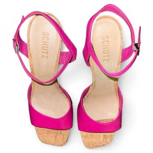 SCHUTZ Glayce Nappa Leather Platform Cork Pump Sandal Dollcore 8.5