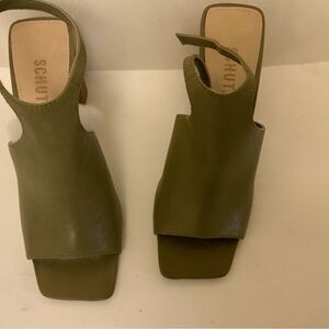 SCHUTZ HEELS 7.5 BACK STRAP MOSS GREEN LEATHER DAWN ANTHROPOLOGIE NEW sz 7.5