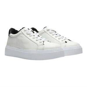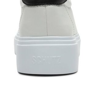 Schutz Kristin white leather platform sneakers black shearling trim SIZE 8.5 .