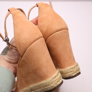 SCHUTZ Keira Platform Espadrille Wedge Ankle Strap Suede Toasted Nut Women's 6.5.