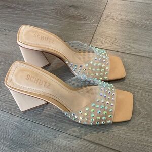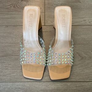 SCHUTZ Lizah Crystal Vinyl Sandal Size 8.5