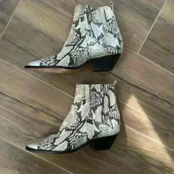 SCHUTZ Luccyen Western Snake Print Metallic Cap Toe Ankle Boots
