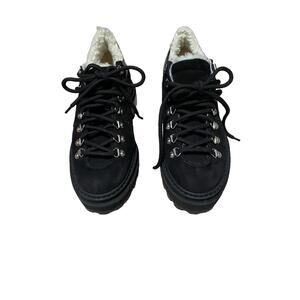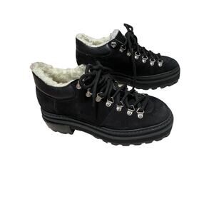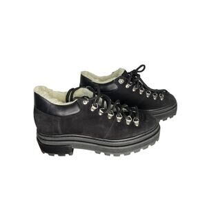 SCHUTZ Lucille Shearling Ankle Hiking Boots Women's Black Size 6B Lace Up Suede