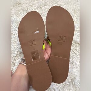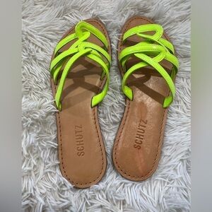 SCHUTZ Lyta Patent Strappy Slide Sandals - Size 7 - NWOT - acid yellow color - no box