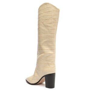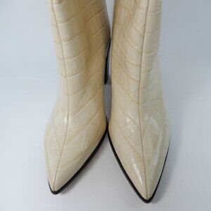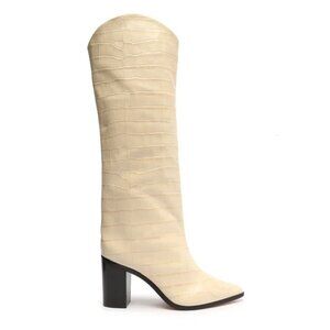 SCHUTZ Maryana Block Heel Tall Boots 10.5 Egg Shell Croco Embossed Leather NEW