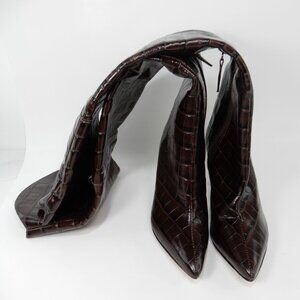 SCHUTZ Maryana Over The Knee OTK Boots Size 5 Chocolate Brown Croc Leather NEW