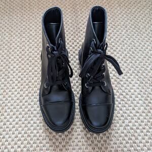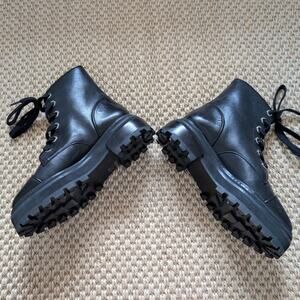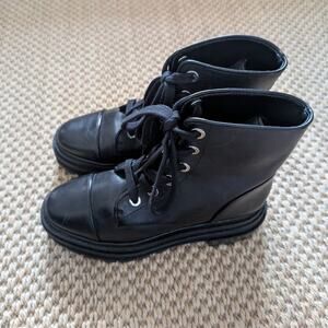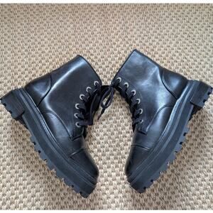 SCHUTZ Maylova Leather Lace-up Platform Combat Boots, Black, size 5B, NWOB