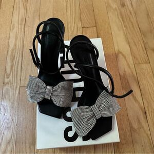 SCHUTZ Mila Square Toe Crystal Bow High Heel Sandals
