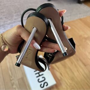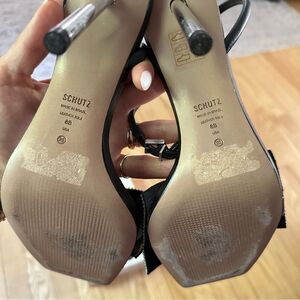 SCHUTZ Mila Square Toe Crystal Bow High Heel Sandals