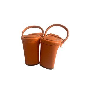 SCHUTZ Orange Leather Double Strap Sandals Heels Size 7.5