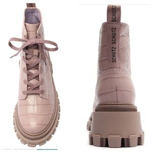 SCHUTZ size 7.5 , 6 B A croc-embossed finish brings subtle texture to a lace-up boot grounded by a utilitarian lug sole.