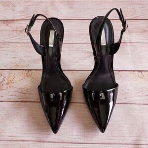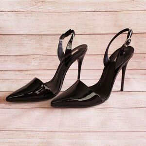SCHUTZ Patent Leather Slingback Pointy Toe Stiletto Heels Black Women's Size EU 40