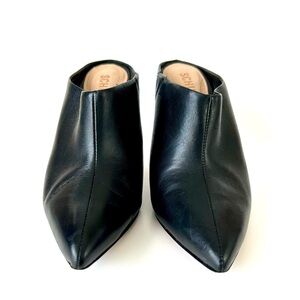 SCHUTZ Point Toe Leather Mules Stiletto High Heels Black Leather Size 7.5
