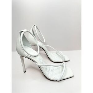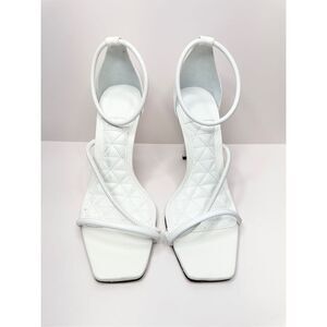 SCHUTZ Sandals Ladies Size 9.5B White Leather Open Square Toe Ankle Strap Heels