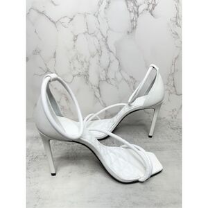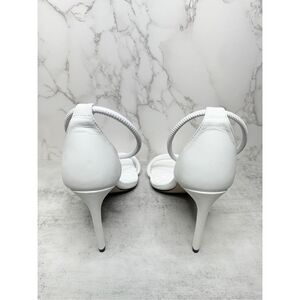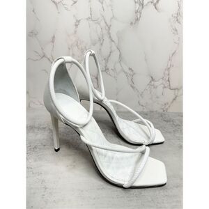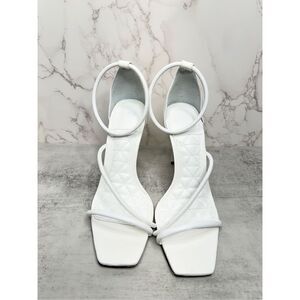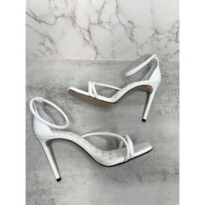 SCHUTZ Sandals Size 8B White Leather Open Square Toe Stiletto Heel Ankle Strap