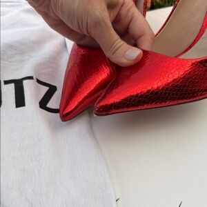 Dazzling red heels by SCHUTZ. Elevate your look with these striking shoes. Like new condition doesn’t appear to have been worn. One spot on the toe as shown in photos could be from storage. Comes with the dust bag.