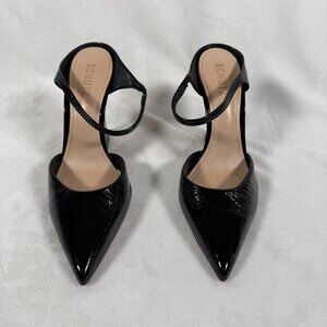 SCHUTZ Shoes Women Size 8B Black Leather Chunky Heels Pointed Cocktail Brazil EUC