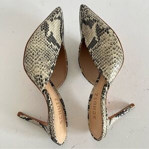 SCHUTZ Snake Skin Pointed Toe Charla Embossed High-Heel Mules size 5.5B