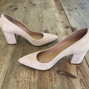 SCHUTZ Suede Block Heel in Blush Pink Leather Interior