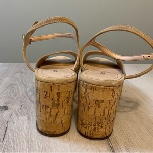 SCHUTZ Tan Cork and Suede Ankle Strap Platform Sandal, Size 8.5B