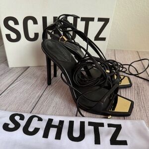 SCHUTZ Vikki Black Leather Lace Up Sandals 8. Excellent used condition.