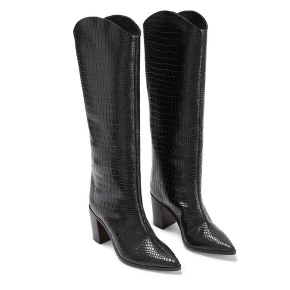 SCHUTZ Women's Analeah Black Croc Boot Size 8B