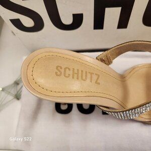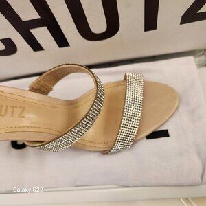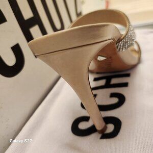 SCHUTZ Womens Beige Double Band Beatriz Toe Stiletto Slip On Leather Sandals 5.5. NIB/Original box/packaging. Come with dust bag. Box has some dirt markings and some minor damage. Shoes are perfect. All embellishments are intact. No rips/statins/scuffs or tears. Smoke free home. No odors. All offers are welcome. Thank \you!