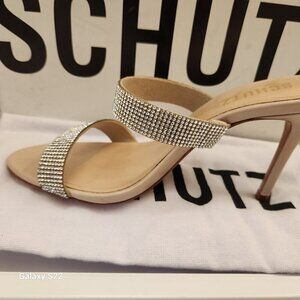 SCHUTZ Womens Beige Double Band Beatriz Toe Stiletto Slip On Leather Sandals 5.5. NIB/Original box/packaging. Come with dust bag. Box has some dirt markings and some minor damage. Shoes are perfect. All embellishments are intact. No rips/statins/scuffs or tears. Smoke free home. No odors. All offers are welcome. Thank \you!