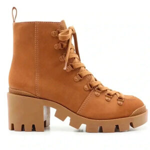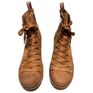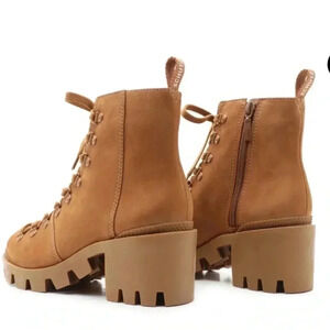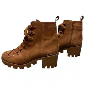 SCHUTZ Womens Hazel Brown Lace Up 1" Platform Lug Sole Xayane Round Toe Block Heel Zip-Up Leather Booties in size 8.5. Exterior is in like new condition but there is some peeling on the inner lining (as pictured and priced to reflect). Stylish boot for winter.