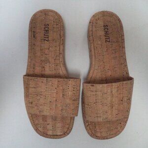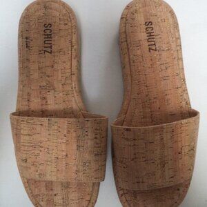 SCHUTZ Yara cork over leather platform Slides Sandals NEW Brazil Size Sz 9.5