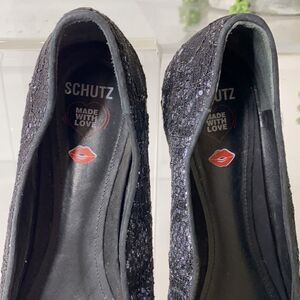 SCHUTZ Metallic Lace Ballerina Flats Black Size 7