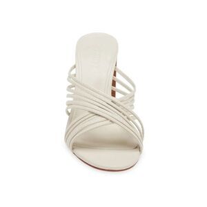 Slender straps crisscross over soft leather slide sandal