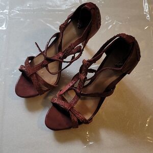 SCHUTZ Red Leather Strappy Heeled Sandals