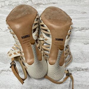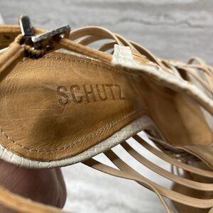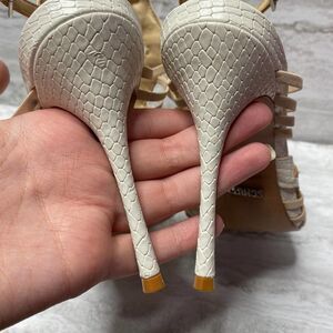 SCHUTZ Snake Print Caged High Heels Leather Sole White Tan Open Toe Ankle Strap