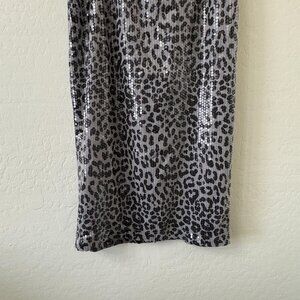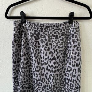 SCOOP Knee Length Reflective Sequin Cheetah Print Skirt