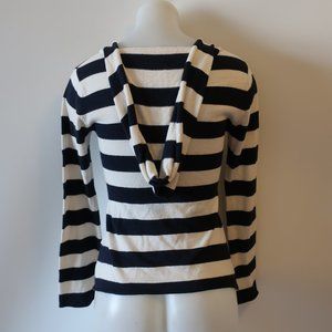 WOMENS SCOOP NYC NAVY WHITE HOODED SWEATER SZ M *