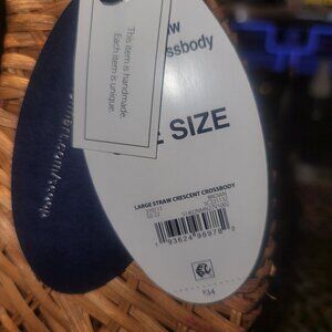 SCOOP Wicker Crescent Crossbody Straw Purse Handbag Basket - Brown Scarf Accent