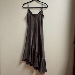 SCOOP Womens Y2K Midi Dress Size S Brown Satin Cowl Neck Asymmetric Going Out