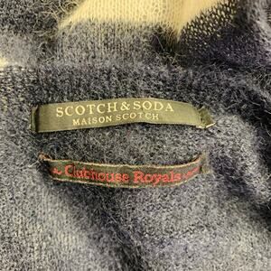 SCOTCH AND SODA pullover in a navy and cream knit featuring a stripe pattern, long sleeves, and crew neck.