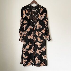 SCOTCH & SODA Black Floral Overcoat Duster Small