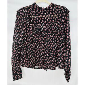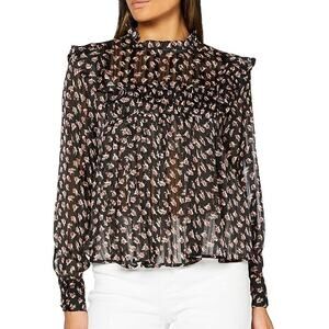 SCOTCH & SODA Floaty Ruffled Long Sleeve Top in Black Floral Print size XS