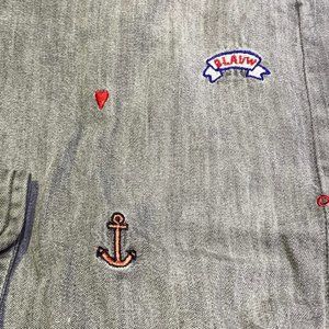 SCOTCH & SODA LA SUITE 125 LONG SLEEVE BUTTON DOWN DENIM GRAY WITH EMBROIDERY