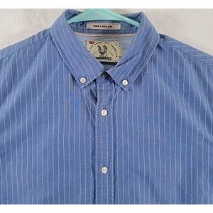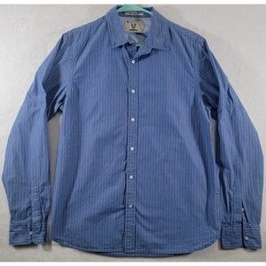 SCOTCH & SODA Large Men's Long Sleeve Button Down Shirt With Locker Loops Blue and White Stripe