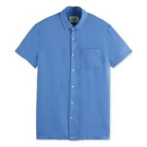 SCOTCH & SODA Men's Regular-Fit Button-Down Linen Shirt Blue Size XXL 0586