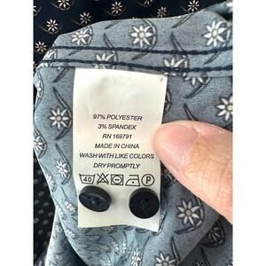 • Color: Navy blue with white and orange daisy floral microprint