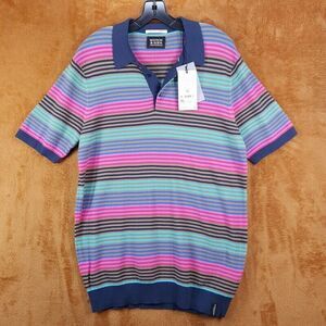 SCOTCH & SODA Polo Shirt Mens Medium Navy Stripe Pullover Cotton Knit $138