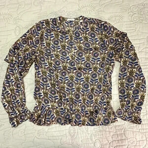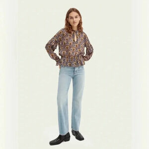 SCOTCH & SODA Ruffle Top Beautiful Floral Blue Pink Black Gold Size Large