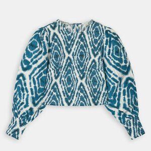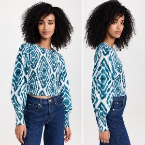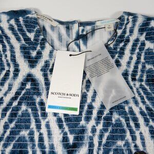 SCOTCH & SODA Smocked Long Sleeve Top Blouse US Size 10 L Bow Back Teal Tie Dye