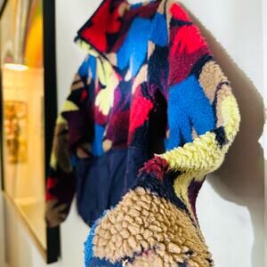 SCOTCH & SODA Teddy Fleece Anorak Flower Camo Blue Jacket in size Extra Small is a cozy and stylish outerwear piece that combines warmth with a unique design. Made from soft teddy fleece, this jacket offers comfort and insulation, perfect for cooler weather. The flower camo print in shades of blue adds a trendy and eye-catching element, setting it apart from more traditional styles. With its zip-up front and anorak-inspired silhouette, this jacket provides both practicality and fashion, making it an ideal choice for casual outings or layering during the colder months.